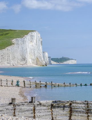 De imponerende kritt-klippene vest for Eastbourne ble dannet for 60-100 mill. år siden mens landskapet fremdeles lå under havoverflaten.