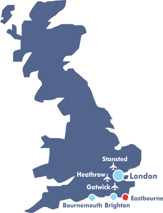 Eastbourne har ca. 103.000 innbyggere og ligger i det syd-østre hjørnet av England i "fylket" East Sussex. De nærmeste flyplassene er London Gatwick og London Heathrow. Stansted er heller ikke langt unna.